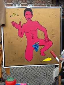A single grape leaf doesn’t cut it for this happy, naked man.  The man selling this painting told me I was one of many who had asked to take a photo of it.  “For some reason.  There’s just something about it,” he kept saying.  It’s because people are fascinated by things they can’t understand.